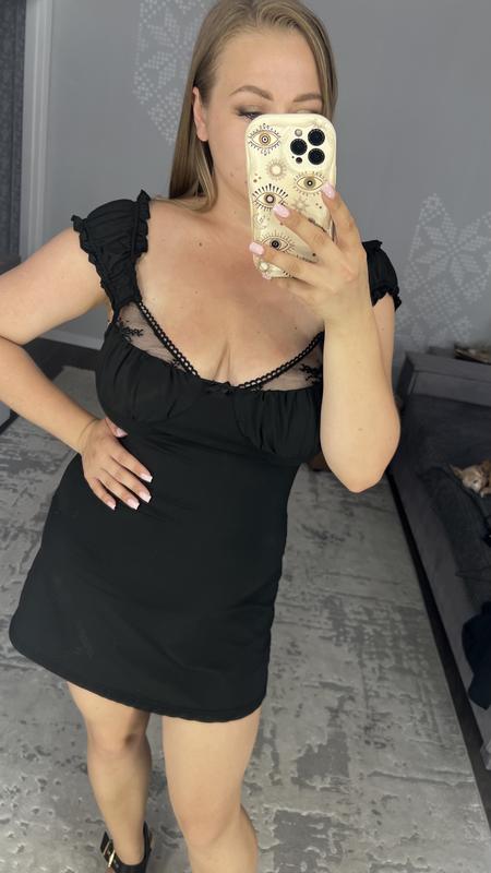 Сукня гарно тягнеться на будь-який розмір , не просвічує. Пог-40, пот-37, поб-47, довжина 55 по спинці.