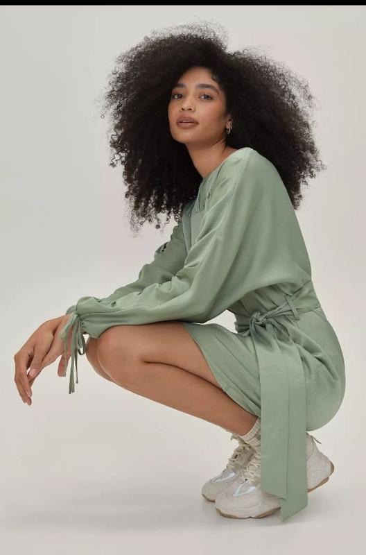 Платье от американского бренда Nasty Gal, вдохновленного бунтарским духом современной женщины, воспевающей индивидуальность, уверенность в себе и смелость. Модель платья в формате "вечеринка после работы". Свободный прямой силуэт с широким рукавом и плечом реглан, акцентная драпировка по линии плеча, горловины и вдоль рукавов. Застегивается на спине на длинную молнию до талии. Ткань - атласный сатин. Цвет мятный с перламутром. Платье можно надевать как freesize без пояса, так и под пояс. Размер - 14 (UK), 42 (FR), 40 (DE), 10 (USA). Длина - 93 см. Объем бёдер - 112 см. Объем талии - 100 см. Ткань - полиэстер (93%), смесовая волокна (7%). RRP (цена на сайте производителя) - 54,50 долл. (ориентивно 2300 грн). Состояние новой вещи, присутствует держатель ценника. Из нюансов - отсутствует широкий пояс как с фото на модели, в комплекте тонкий пояс.