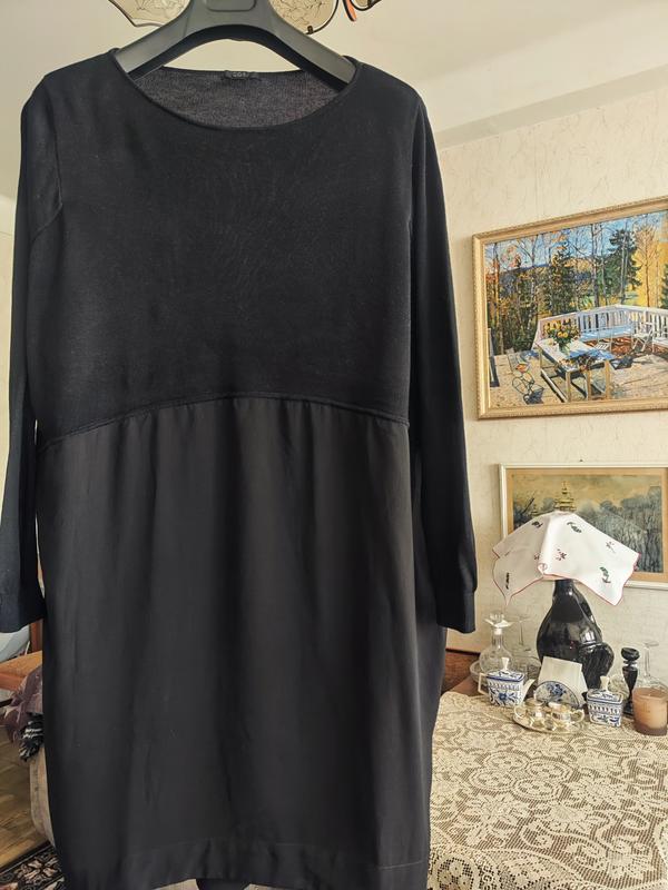 платье от cos черного цвета с длинным рукавом, верх из трикотажа низ из искусственного шёлка, силуэт прямой и объемный, размер S подойдёт на М