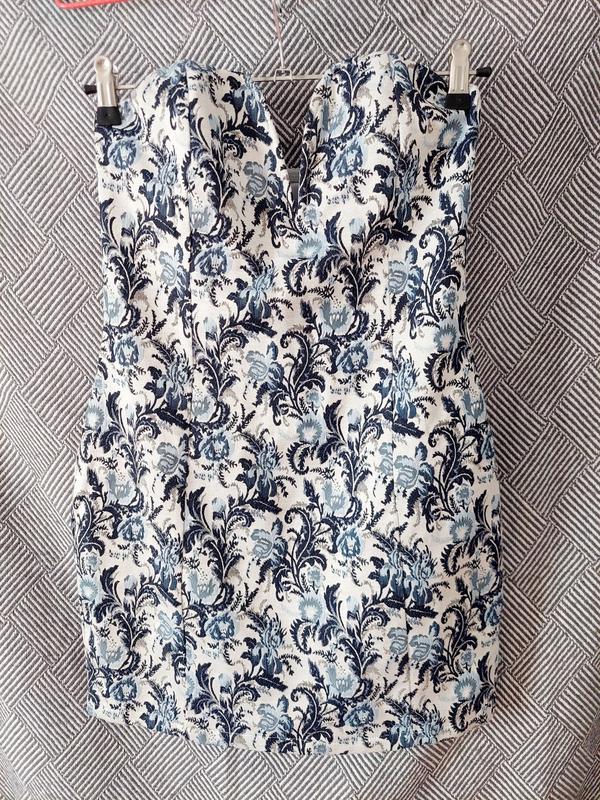 Мини-платье с ярким принтом и красивым декольте. Напвозъем груди - 43, Напвиобъем талии - 36, Напвеобъем бедер - 48.