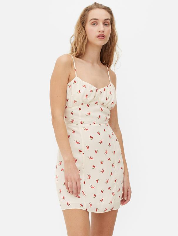 Новая, с биркой Платье на подкладе Бретели регулируются Размер М Замеры: Полуобхват груди- 50 см+ регулируется завязками Полуобхват талии - 38 см + тянется (сзади в талии резинка) Полуобхват бедер по подкладке - 54 см Длина с бретелями - 90 см, длина без бретель по центру спереди- 68 см