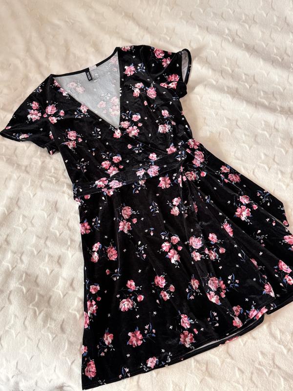 🌹 Жіноча оксамитова сукня в квітковий принт 🌹 🔹 Матеріал: оксамит (приємний до тіла, гарно тримає форму) 🔹 Колір: чорний із ніжним рожево-білим квітковим візерунком 🔹 Фасон: приталений верх + розкльошена спідниця 🔹 Декольте: V-подібний виріз 🔹 Рукав: короткий 🔹 Довжина: вище коліна (мііні/міді залежно від зросту) ✨ Ідеальний варіант як для повсякденного образу, так і для романтичного побачення чи вечірки.