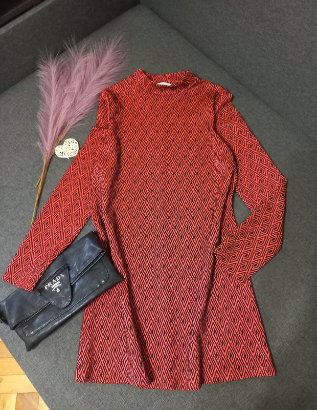 Жаккардовое платье ZARA с высоким воротником и длинными рукавами. Очень приятная к телу. Состав: 98% полиэстер. 2% еластан. Размер - S. Длина - 85 см ПОГ - 46 см Рукав - 65 см от плеча. В идеальном состоянии. ------ Смотрите другие Мои объявления. Подписывайтесь на обновление👚🩱👛👗🎒. Подарунки 🎁к каждому заказу при 100% оплате на карту.