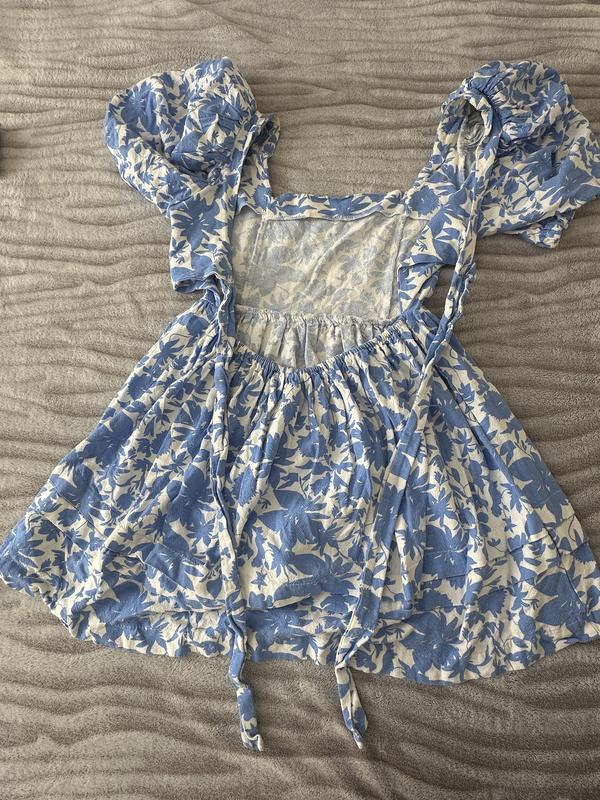 Неймовірна літня сукня з блакитним принтом, відкритою спиною, дуже коротка