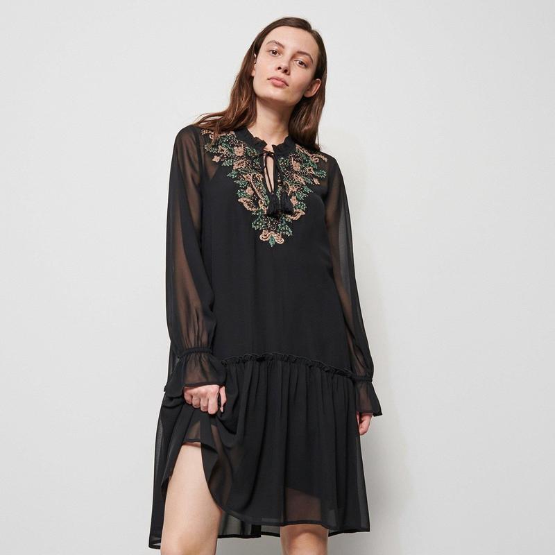 Хорошее черное платье с вышивкой. состояние идеальное. хорошее качество. состоит из двух частей нижнее в виде платья комбинация а верхняя платье шифоновая. длина по спинке 98 см ширина по груди 48 см