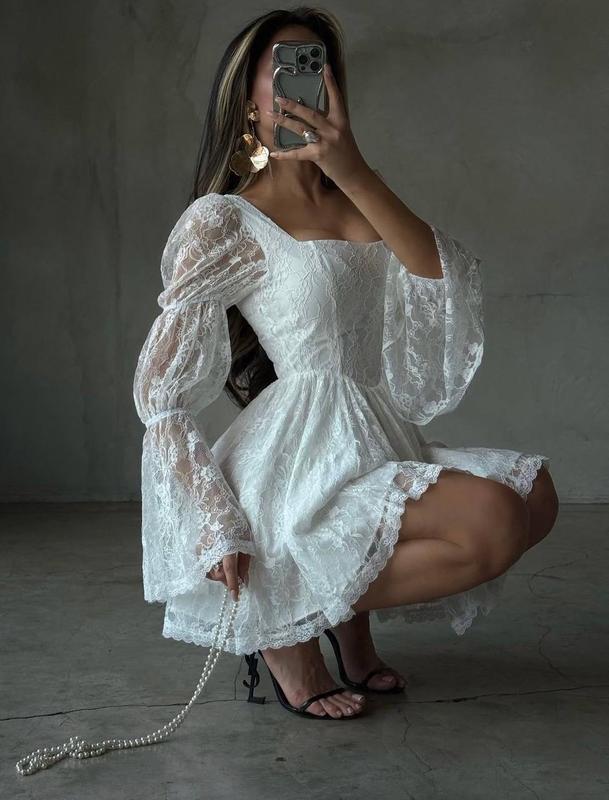 New🩶 Отримали✔️ Сукня 🔘Мод md 1148 🔘Розміри - 42-44, 46-48 🔘Кольори - молочний 🔘Тканина - гіпюр + підкладка Вишукана мереживна сукня з пишною спідницею та обʼємними рукавами. Ідеально підійде до будь-яких свят. Має підклад та не світиться. Приємна легка тканина. Збоку йде потайна змійка.