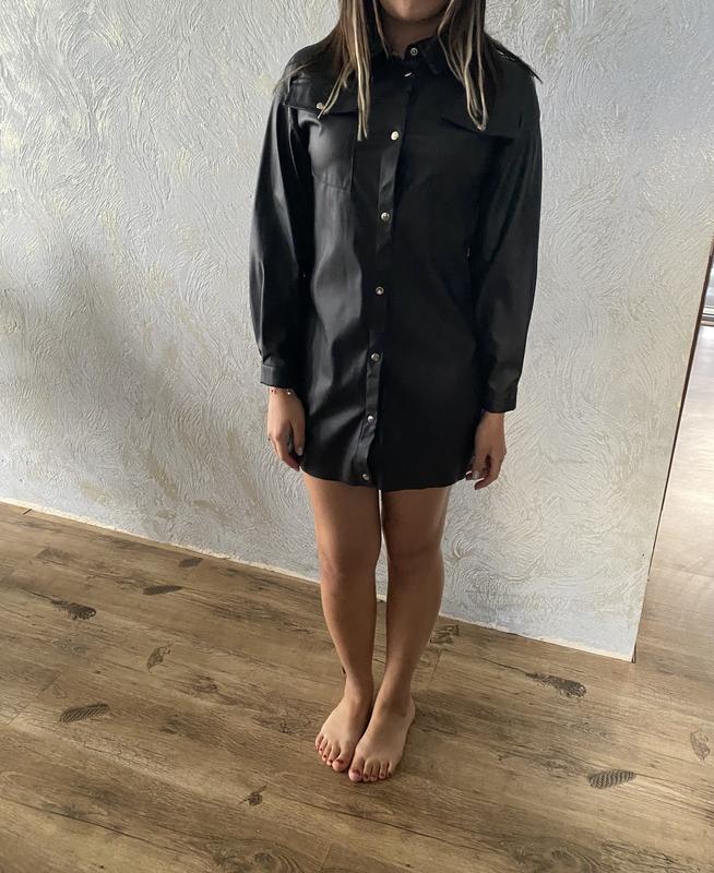 Плаття на закльопках, перед коротший, в дуже хорошому стані, матеріал щось типу еко шкіра Розмір пише S