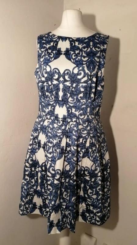 Розмір: 16 (Closet) Колір: білий із синім візерунком Особливості: є кишені, ззаду блискавка, легка та зручна.