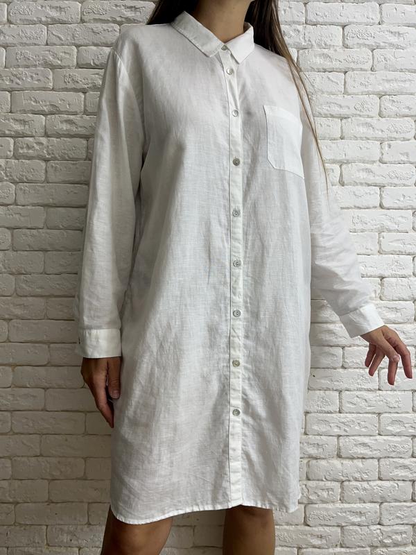 Базова біла сукня сорочка з натуральної тканини. Фасон прямий. Довгий рукав. Стан ідеальний Розмір M/L