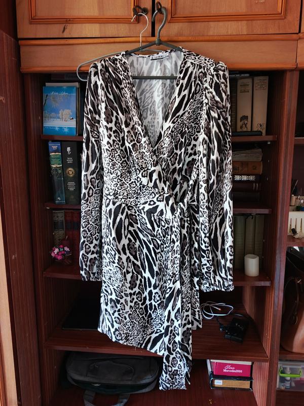 Новое платье, одевалась только для примерки. Подарок, берок нет. На груди 95 см замала, до 90-93см. Пояс на завязках. Довжина 85см. Рукава на ризинках. Материал указан хлопок и эластан, но на ощущение как очень плотный тяжелый атлас, не светится.