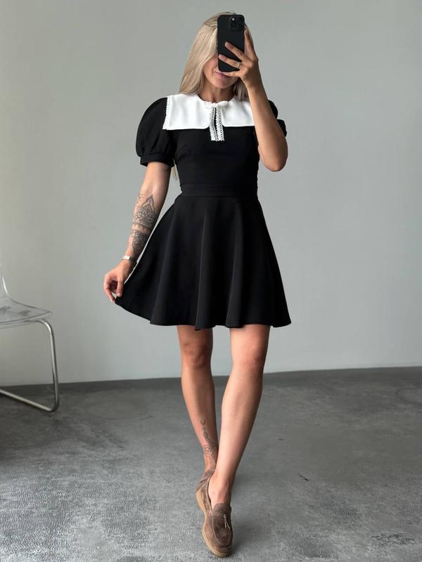 NEW COLLECTION ✨️ Елегантна, стильна та витончена сукня, без якої не обходиться жоден гардероб,підходить для різних випадків. А додавання білого коміра надає грайливість і додаткову родзинку♥️ Комірець знімається, є поясочок, на спинці змійка 😍 Модель #689 Тканина: костюмка Розмір: 42-44, 46-48 Кольори: чорний + білий комірець 🏷️960 грн