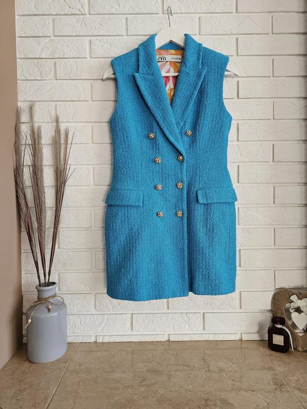 🌷🌷Твидовое платье жилет Zara. Премиум коллекция. Цвет невероятный😍 Качественная фурнитура. Контрастная атласная подкладка. Двубортный, плотный, держит форму. Можно комбинировать с блузами или же носить самостоятельно. 🌿 Состояние: великолепный (одна внутренняя потайная пуговица отсутствует, ни на что не влияет) Размер: М. На S тоже сядет. Сделаю все необходимые замеры.