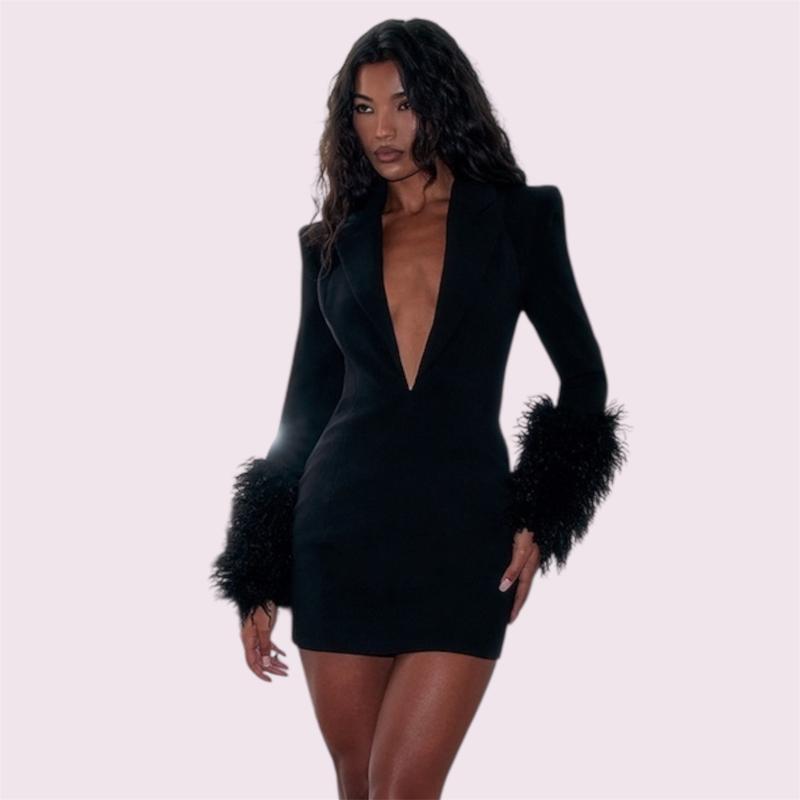 Жіноча коротка сукня-піджак в чорному кольорі з глибоким V-подібним вирізом і манжетами зі штучного хутра від Prettylittlething. Нова, сток. Збоку на блискавці. Має підплічники. Розмір 10 (М), дивіться по замірам. Склад: поліестер 70%, віскоза 24%, еластан 6% Довжина 80 см ПОГ 91 см ПОТ 73 см ПОС 99 см Рукав від плеча 66 см Переходьте та підписуйтесь на сторінку, ще є жіночі речі за доступними цінами🌸 Підписникам знижка😉