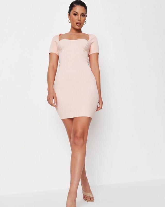 Персиковое платье в рубчик с декольте. хорошо тянется. Состав:71% вискоза, 29% полиэстер Бренд Missguided Размер UK 10/12 М Цена 295 грн