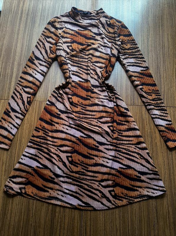 Осеннее теплое платье солнце клеш в красивый леопардовый принт длинный рукав