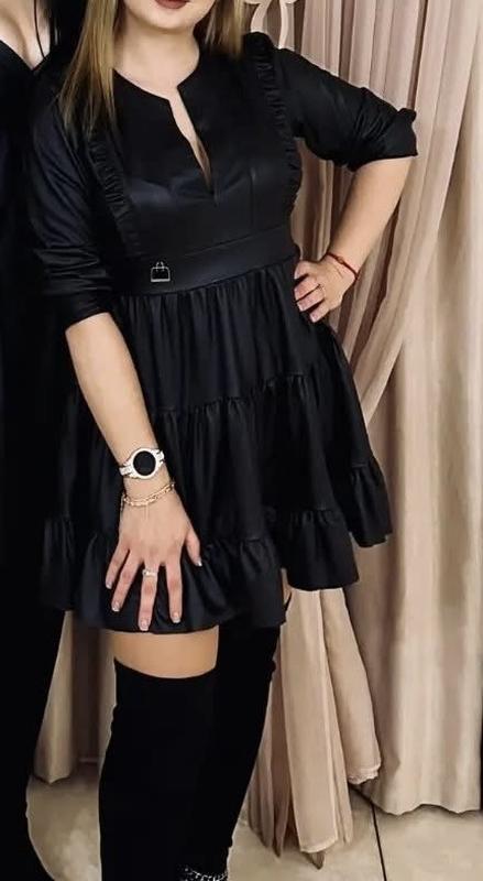 Шкірне чорне плаття, кльошне з декольте коротеньке, одягалось 2 рази