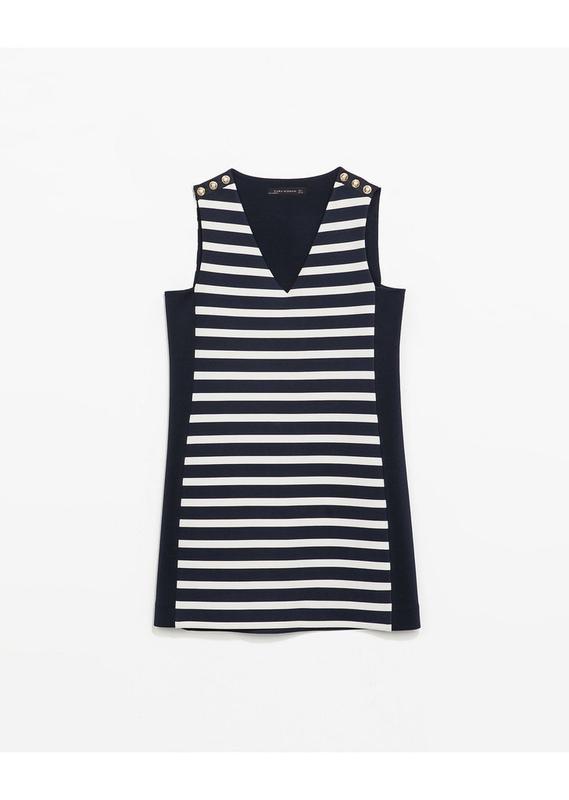 Жіноча коротка стильна сукня-трапеція у смужку з декоративними ґудзиками у розмірі XS. Стан - ідеальний. Склад: 94% поліестер, 6% еластан.