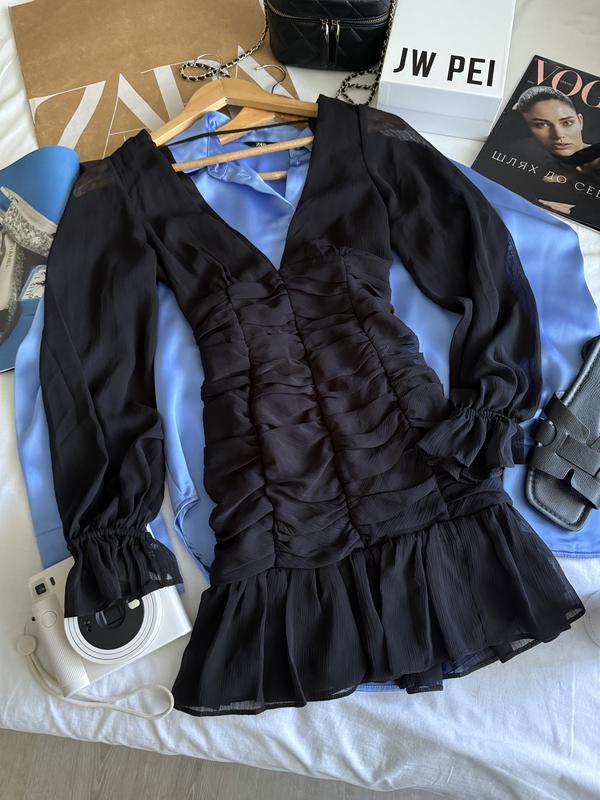 Трендовое платье черное Asos Состояние: идеальное как новое Дефекты: нет Размер: S Замеры изделия: ПОП 32 см ПОГ 38 см ПОТ 33 см ПОБ 39 см ПО выхода внизу изделия 46 см Длина рукавп от плеча 61 см , от подмышки 48 см Замеры изделия измеряются в полуобхвате , а не от шва до шва!