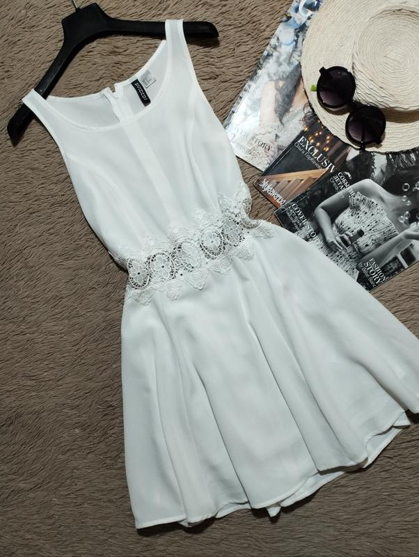 В идеальном состоянии. Красивое платье с кружевом и юбкой солнце клеш. Ткань легкая, чуточку просвечивает, есть подкладка на юбке. Размер 4/32/XS, но смотрите по замерам Замеры (полуобхват): Груди 37-38 Талия 31-33 Бедна57 Длина от плеча 79