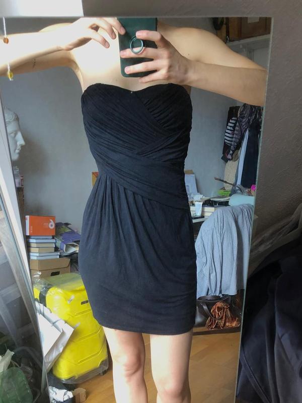 Трикотажное платье с очень красивой драпировкой лифа! Эти мягкие переплетения очень изящно и празднично выглядят, кроме того, что еще и добавляют объема в груди😇 Лиф с силиконовой полоской, надежно сидит, не спадает, но и не врезается в кожу и не сковывает движений. Ткань - нежный трикотаж натурального состава (район), есть подкладка. Сзади застежка-молния. Можно носить как короткое платье, или как топ, надев поверхною длинную юбку или брюки палаццо 👌 Платье насыщенного черного цвета, камера чуточку освещает. В идеальном состоянии, без каких-либо дефектов и недостатков. Длина спереди - 72см, Длина по спинке - 63см, Ширина в талии 33см, В стегнах — 48см. Хорошо тянется в талии и бедрах. Мой рост 174, параметры 89-64-94.