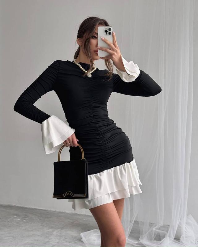 Хіт продаж 💕 Знову отримали 🫶🏻 Сукня Модель 1199 ▫Тканина - масло + шифон ▫Розміри - 42-44 та 44-46 ▫Кольори - чорний ▫️Ця сукня точно буде для тебе особливою 😍 Довжина міні , шифонові рукава і спідничка, крій який підкреслює жіночність 🥰