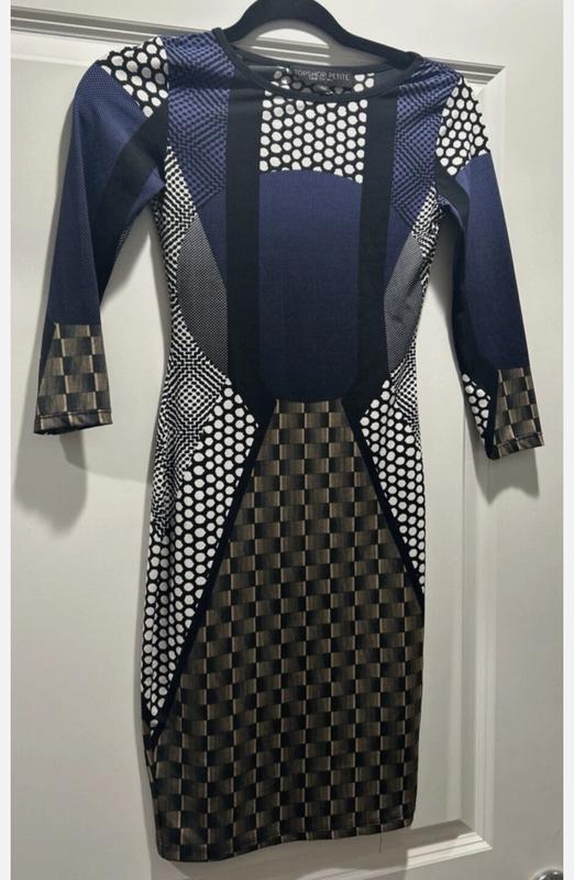 Оживите свой гардероб этим потрясающим платьем от Topshop. Женский мини-фасон идеально подходит для любого события, будь то повседневный выход в свет или официальное мероприятие. Платье имеет круглый вырез горловины и рукава 3/4, а застежка-пуловер обеспечивает легкость ношения. Легкая и эластичная трикотажная ткань не мнется и ее можно стирать в стиральной машине, что делает ее идеальной для путешествий. Черный, темно-синий и белый геометрический узор добавляет платья нотку элегантности, а отсутствие каких-либо инструкций по персонализации делает ее универсальным дополнением к любому гардеробу. Это платье является обязательным элементом для любой модной женщины.