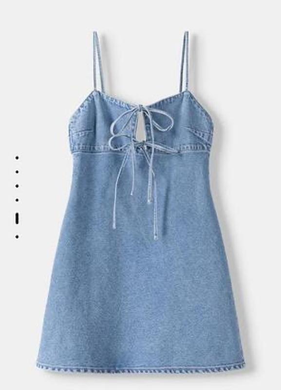 Шикарна джинсова міні сукня із завʼязками на декольте L