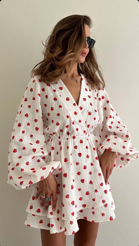 состав 1. Код: 1140(гол1469) 20.05 Платье ▫️Мод 1140 ▫️Ткань - муслин (100% хлопок) ▫️Размеры - 42-44 и 44-46 ▫️Квіти — принт сердечка, принт горох, принт полуничка 🔝Муслиновые платья стали хитом этого сезона и в них невозможно не влюбиться с первого взгляда, а эти дизайны сводят с ума🥰 Воздушные перчатки и юбочка с рюшами 😍 Невероятно нежное и легкое платье станет твоим любимым 💓