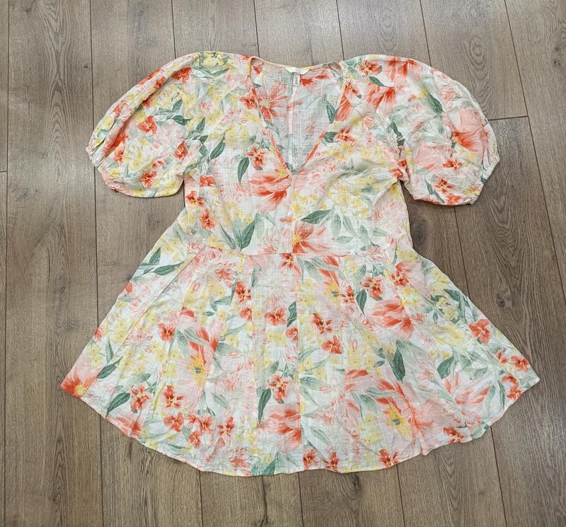 Летнее женское хлопковое платье оверсайз с цветочным принтом, размер L (48), замеры на фото