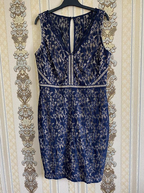 Стильна мереживна сукня, синє з бежевим плаття по фігурі, сукня мереживо