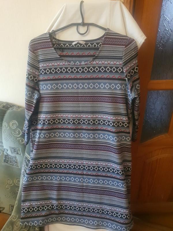 платье женское с 3/4рукавом в полоску- орнамент, подходит как на деловые будни, так и на веснушких событиях, носколькие лаконичные по выполнению, 39с в плечах, 54см в груди,86см длина