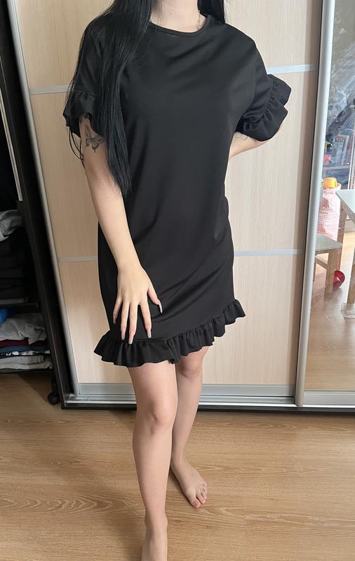 Чорна коротка сукня. Напівобʼєм плечі 43 см, груди 51, талія 51, стегна - 51. Вказаний розмір 38. Без дефектів