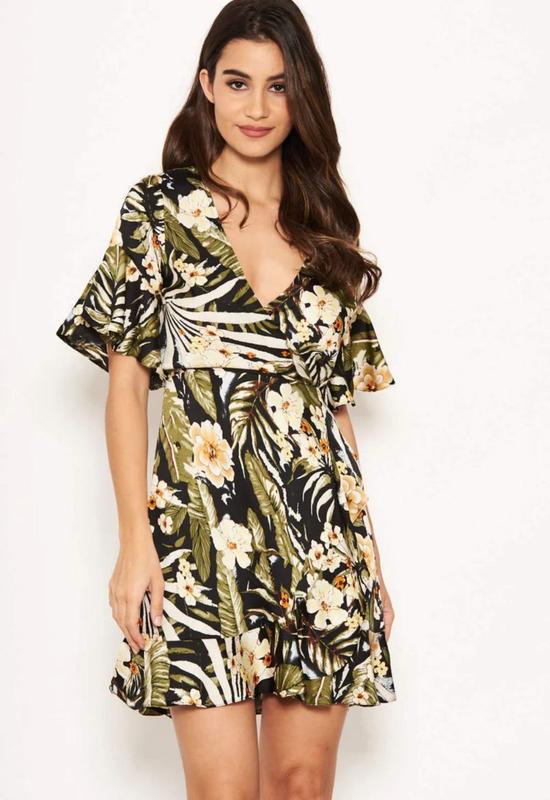 Короткое атласное платье с цветочным принтом от ax paris
