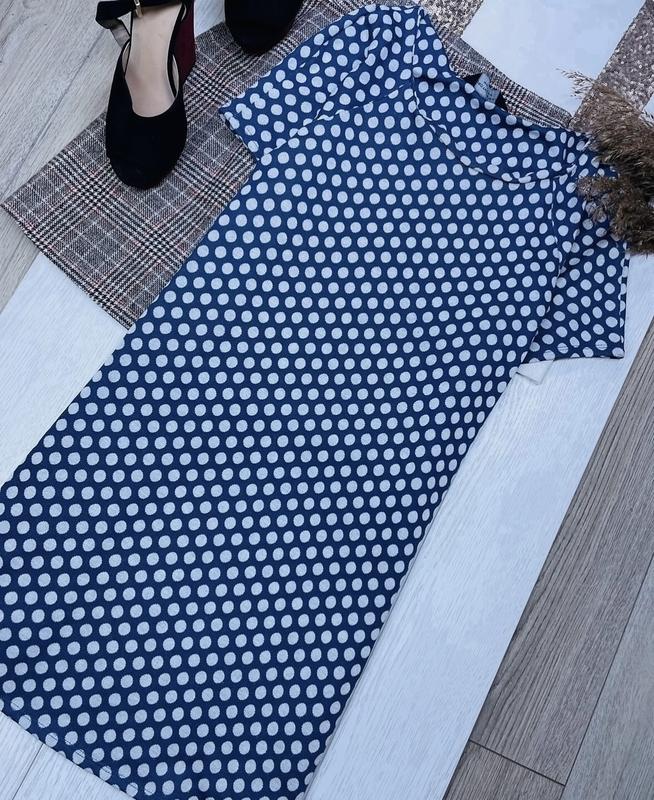 сукня з в’язаного трикотажу Dorothy Perkins в горохи Розмір :XL 59% поліестер, 40%віскоза, 1%еластан Сукня з коротким рукавом, колір ніжно - синій білий горох Стан 5/5 Матеріал щільний,приємний, трохи тягнеться Виміри виконані від шва до шва будь Ласка, орієнтуйтеся на них Рукав 25 ПОГ 48 Півобхват талії 48