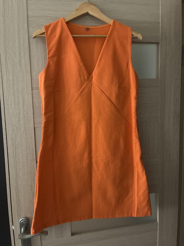 Коротка Сукня з льону помаранчевого кольору. 46розмір . Ог 100, от 85, ос 110. Довжина виробу 85. Застібайться на бічну змійку