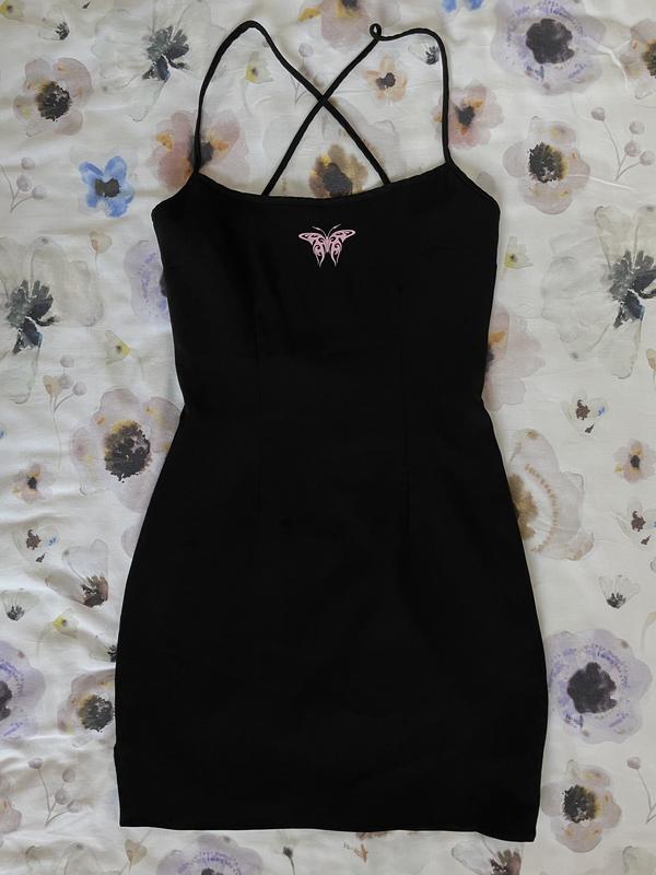 Мини платье с шнуровками на плечах и маленьким разрезом на ножке