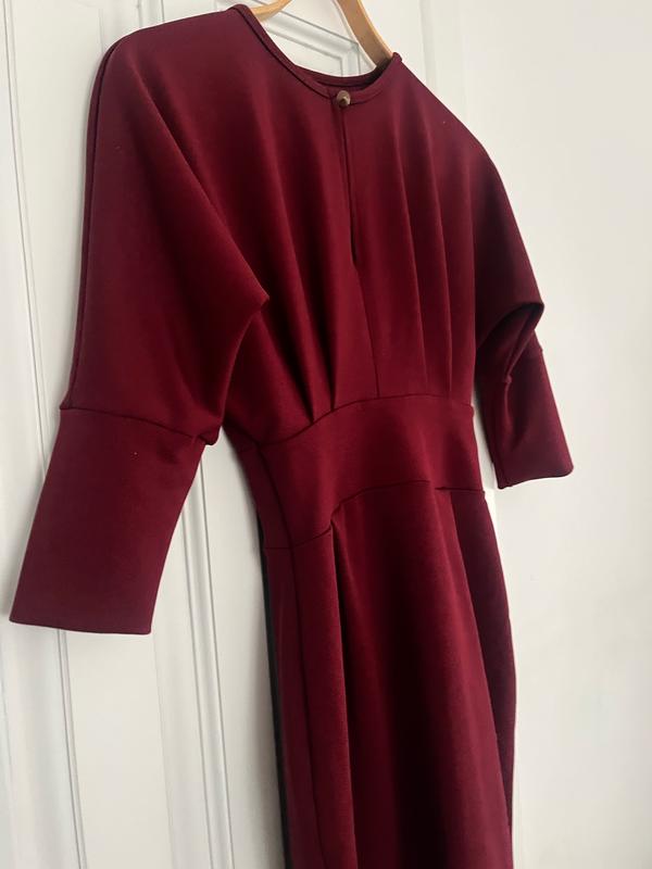 Неймовірна сукня з щільного трикотажу насиченого кольору марсала. Фантастично підкреслює фігуру.