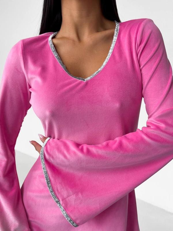 Мш 3.10 🕊NEW 🙌🏻 NEW 🕊 Сукня 🔥 ▪️Модель: 2/31/2/103 ▫️Розмір: S-M; M-L ▪️Тканина: Турецький велюр ▫️Колір: чорний; рожевий Сукня із мʼякого велюру🤤 з v-вирізом ,прикрашено блискучою стрічкою в сріблястому кольорі 🤍Бездоганний крій робить цю сукню ідеальним вибором для вечірніх заходів, побачень чи урочистих заходів💫 Реал фото В2В