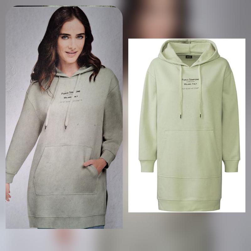 Утепленное платье худи/ платье- туника на байке от Esmara (Германия). Оверсайз, поэтому подходит и на размер больше. Состав: 80% хлопок, 20% полиэстер Цвет фисташковый. 🟢В размерах В НАЯВНОСТИ: M( 40/42) ,L ( 44/46 ) Замеры в спокойном НЕРАЗТОМ состоянии. Замеры S ( EUR 36/38) : - под рукавами 57-58 см - Рукав от горловины 65 см - полупояс по верхней линии кармана 59 см - полустегна 53 см (по нижней линии кармана) - Длина платья по спине по центру 80 см Замеры М (EUR 40/ 42) : - под рукавами 62 см - Рукав от горловины 67 см - полупояс по верхней линии кармана 61 см - полустегна 57 см (по нижней линии кармана) - Длина платья по спине по центру 83 см Замеры L ( EUR 44/46) : - под рукавами 73 см - Рукав от горловины 72.5 см - полупояс по верхней линии кармана 71 см - полустегна 64 см (по нижней линии кармана) - Длина платья по спине по центру 80 см Оплата на расчетной счет ФОП.