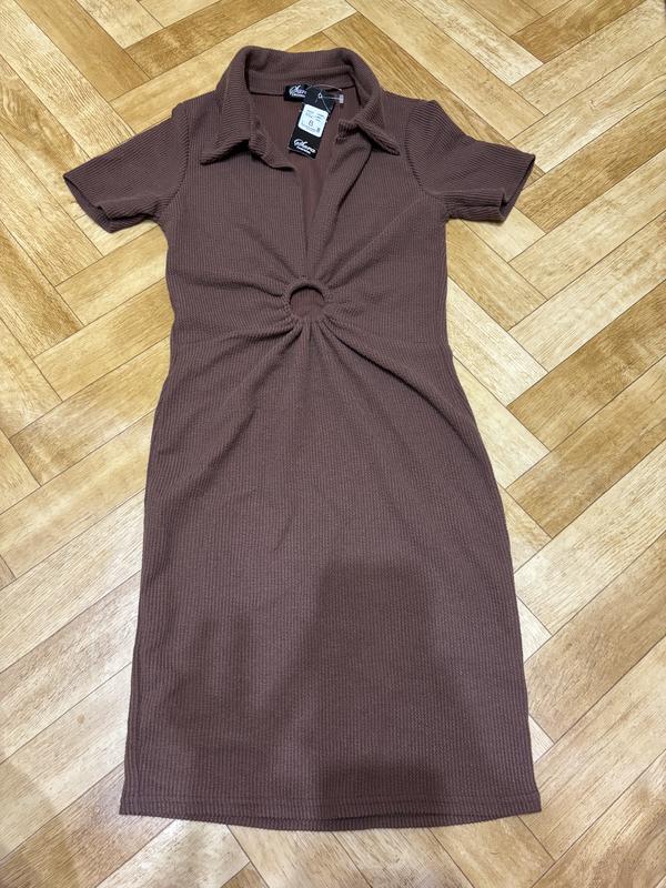 коричнева в рубрик сукня з коміром і вирізом Розмір зазначено 8але маломір Довжина 84 см ПОГ + ПОБ 33-44 см