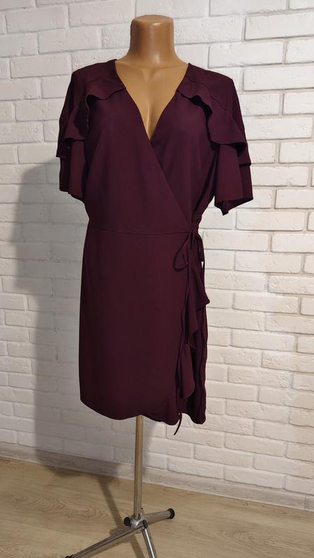 Платье на запах красивого цвета марсалового в идеальном состоянии, размер указан европейский 18. Замеры НПО груди 54 см., НПО талии 50 см., можно регулировать запах меньше, НПО бедер до 60 см., длина 92 см.