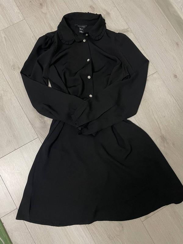 Черное платье из плотного шифона размера С, длина по колено. Ткань плотная, ничего не просвечивает.