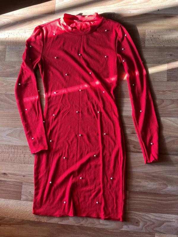 Платье красное в рубчик