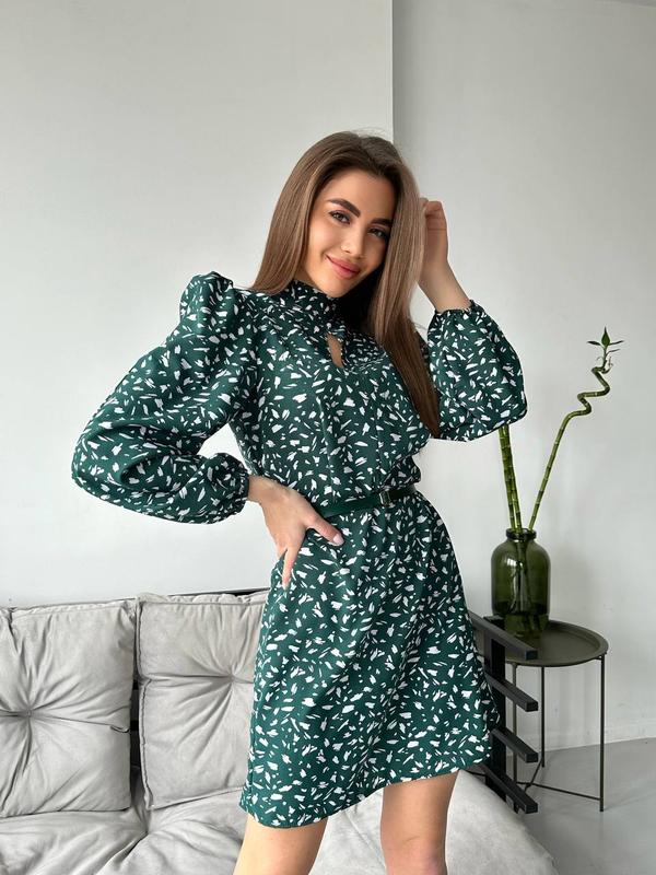 Платье Мод 692 Ткань - турецкий Soft Цвет - зеленый, фрез, черный Размер: S-M, L-XL Разрез на груди Рукава на резинке Сзади потайная молния По бокам карманы Длина 89 см