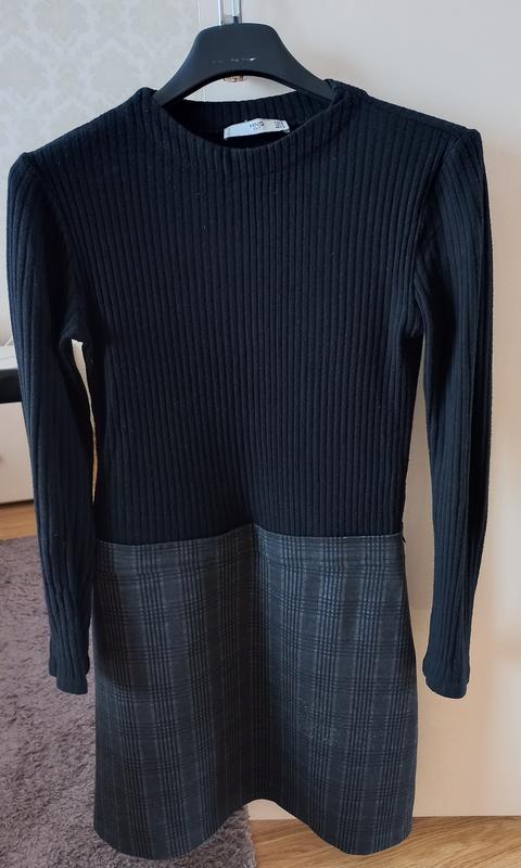 Комбинированное платье Манго, размер М. Верх хорошо тянется, по фигуре. Юбка в клетку. Есть чуточку катышек. Плечи 39-47 Пг 40-47 Пт 39-41 Длж 81 Рукав 56