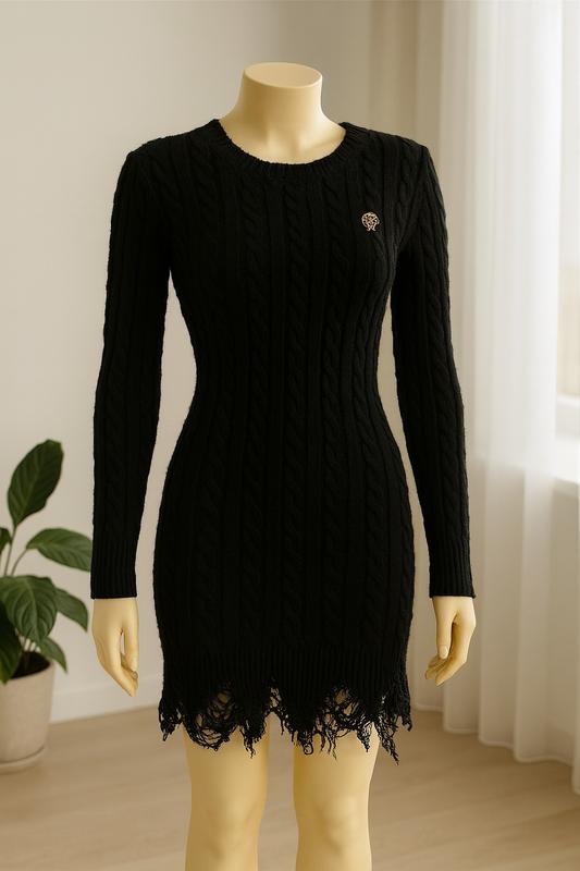 Стильне чорне плаття з фактурної в’язки. Модель приталеного крою, з довгим рукавом та оригінальним декором по низу. Тепле та комфортне, ідеально підійде як для повсякденного образу, так і для вечірнього виходу. Без бірки .