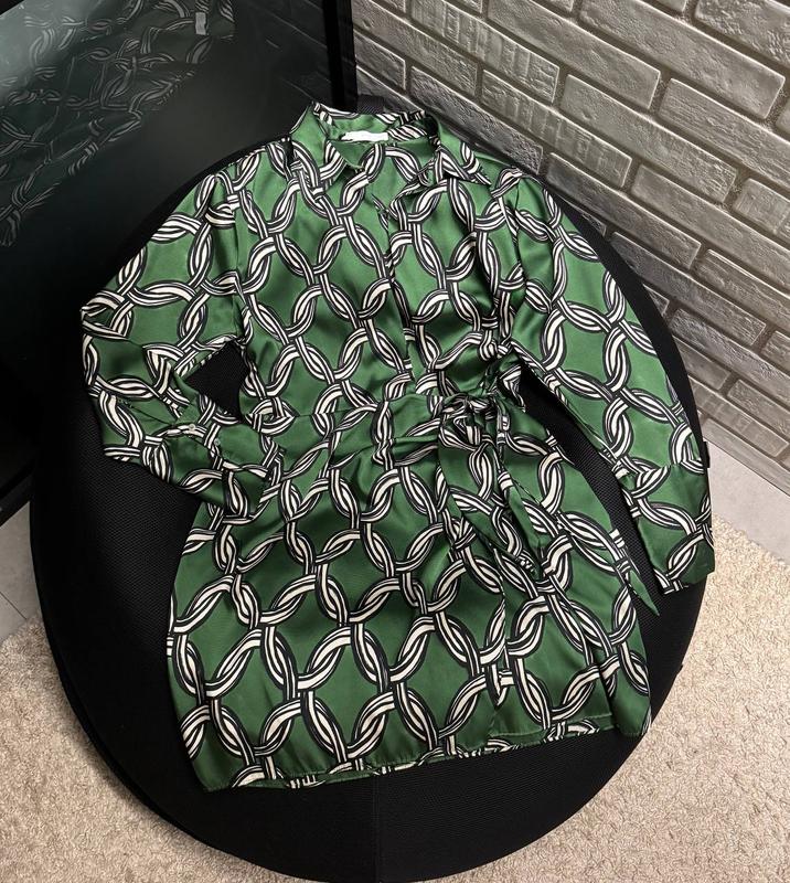 Стильное платье красивого цвета из атласной ткани от известного бренда Стан замечательный Трешки растягивающаяся внутренняя резинка для пуговицы Размер указан XL Ширина под подмышками 56+ запах Ширина в талии 43+ запах Длина 88