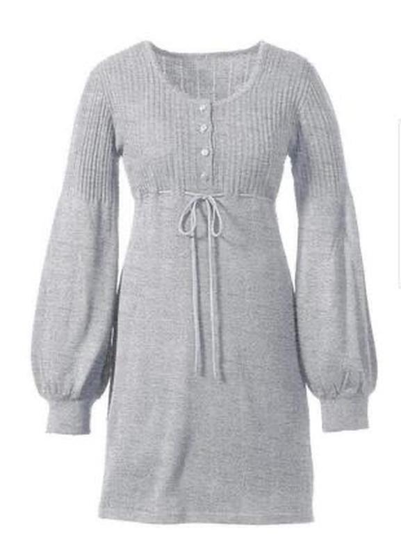 Жіноча стильна сіра трикотажна вʼязана сукня з довгим рукавом і завʼязками