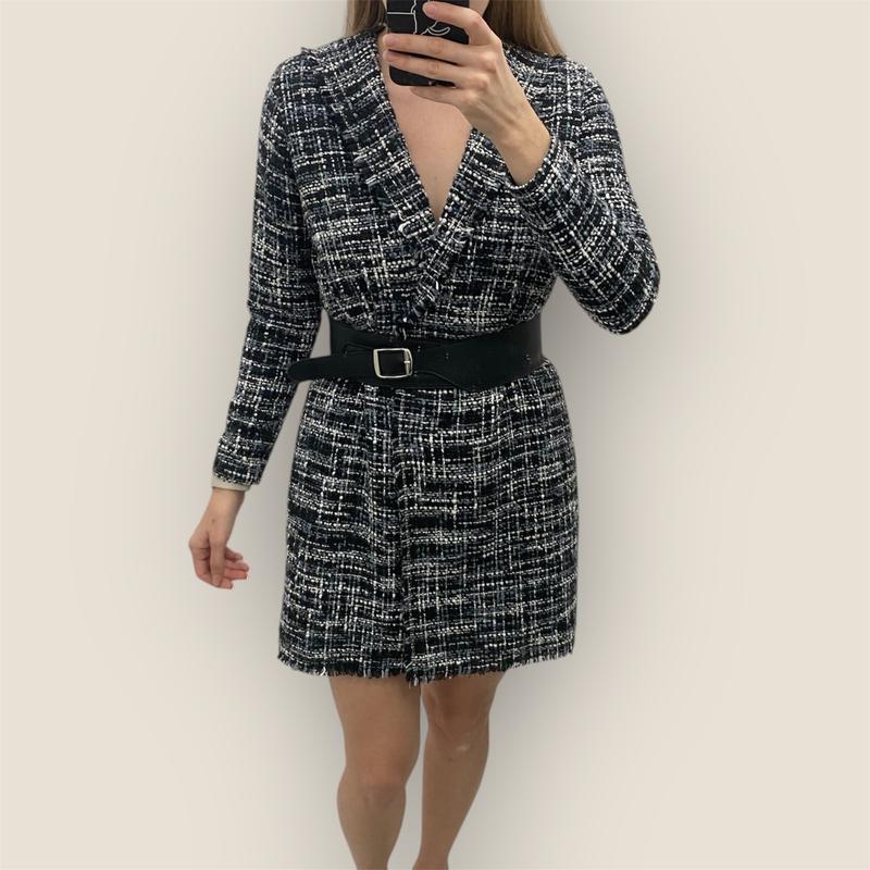 Нова сукня з тканини твід, з поясом, розмір M. Обʼєм грудей 92-96см Обхват талії 74-84 см Обхват стегон 98-104 см Ширина спини 40 см Довжина рукава 57 см + 13 см плече Довжина сукні 88 см