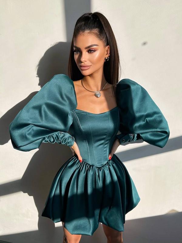 Платье с объемными рукавами и юбкой баллоном Размер: S,M,L ▫️Размер: S,M▫️ткань: королевский атлас ▫️Размер L под заказ ( 250 грн) Артикул: 19158